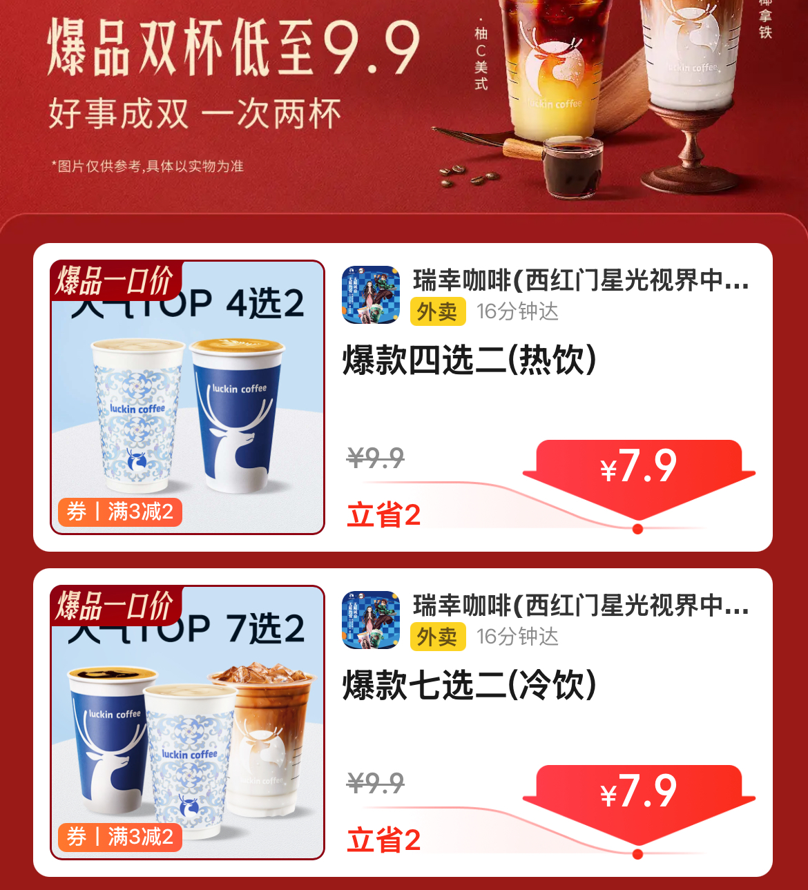 降价💥瑞幸双杯💰7.9了❗️❗️