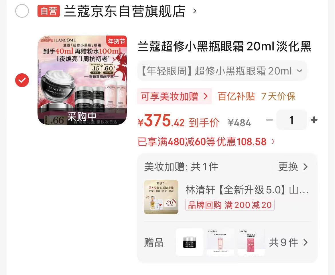 兰蔻小黑瓶眼霜40ml💰375再送粉水!