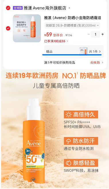 59🉐小金刚防晒喷雾200ml*2!