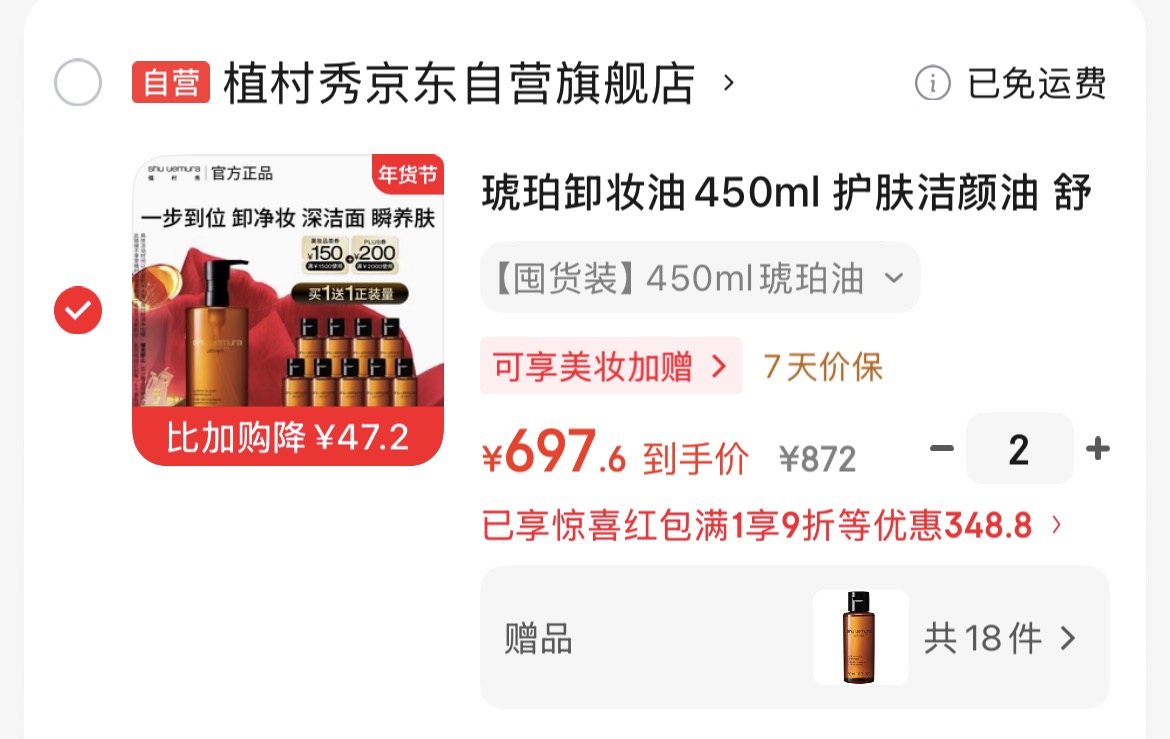 降20‼️植村秀琥珀卸妆油900ml💰697