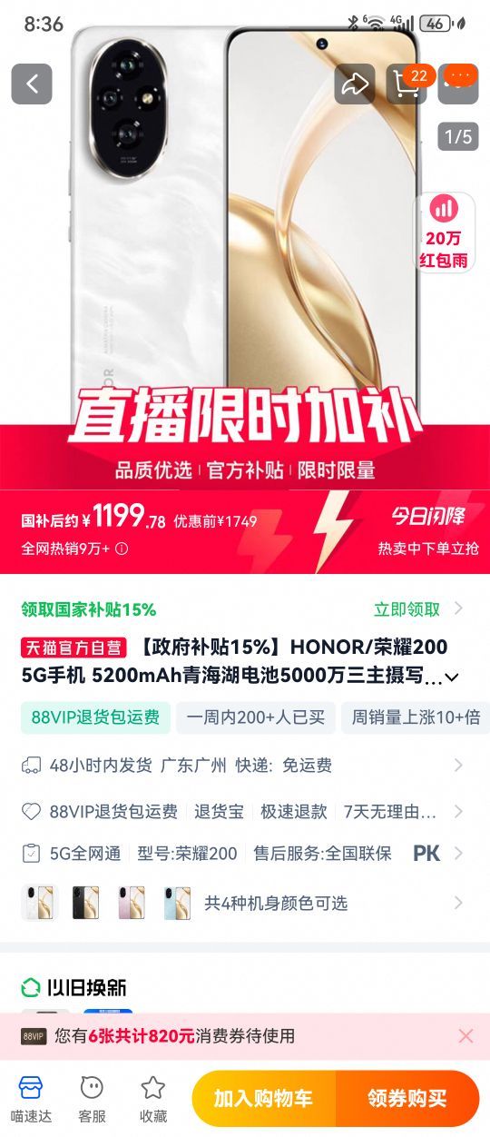 此款目前活动售价2699元,商品页面右侧进入喵速达直播间专享立减70,3C数码满980-100优惠券,88VIP满1500-150消费券,部分地区国家补贴15%,下单1件,实付1214.65元。